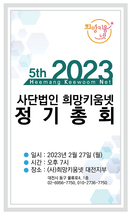 2023년 제 5회 사단법인 희망키움넷 정기총회를 개최합니다.