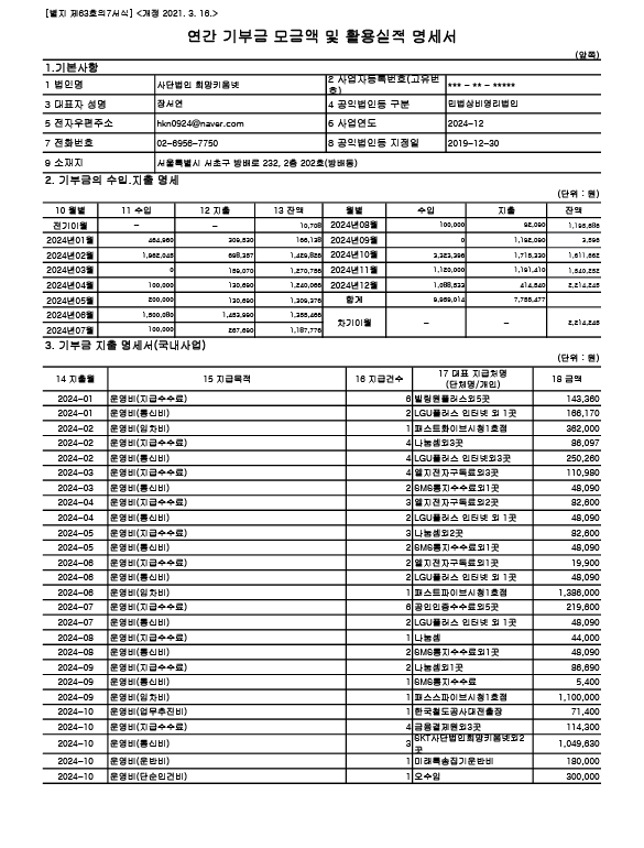 | 2023년도 기부금 모금액 및 활용실적 명세서(공시) (0) | 2024.11.11 |